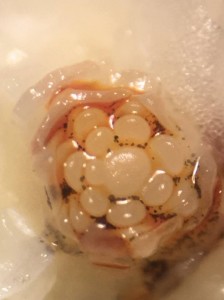 These pictures show the creation of a new flower in the tulips through the microscope. At the moment we are checking all of the lots from our own nursery and our selected growers to see if the new flower has reached the correct stage. The pictures clearly show that the pestle, which is in the heart, has fully been formed as well as the six flower petals. This means that the flower is ready, which we call the G stage. Now we can start treating the bulbs at different temperatures, which allows us to make sure that the tulips flower on the date requested by our customers.