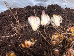 Our lily bulbs are still being shipped to our customers on a weekly basis. The lily bulbs are thoroughly inspected before they are placed in the container. During this inspection we also cut a few bulbs in half to be sure that the sprouts are OK. Of course we do all of this to guarantee an excellent quality of our lily bulbs.