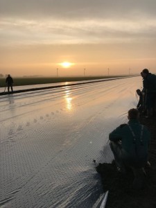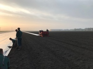 At the end of last week, the conditions were good to cover the field of recently planted tulip bulbs with plastic foil. This foil ensures that the tulips will flower earlier next spring, and therefore the bulbs can be harvested earlier as well. This way, the tulips will flower approximately 2 weeks earlier next winter (2018/2019) than they would without plastic foil, which makes them suitable for Christmas flowering.