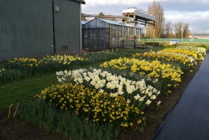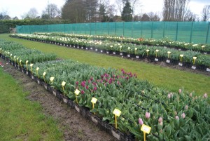 In order to see the results of our non-treated tulip bulbs for dry sale and park planting, we have also planted approximately 900 samples of over 200 tulip varieties outside. Please see the third picture for an overview of our outside tulip test plantings.