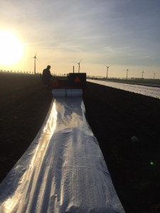 Yesterday was a good day to lay the plastic foil across the fields again. The plastic ensures that the tulips will flower earlier than normal, which makes them suitable for flowering at our customers in December 2019. And it also makes for nice pictures!