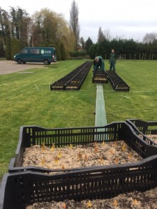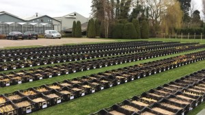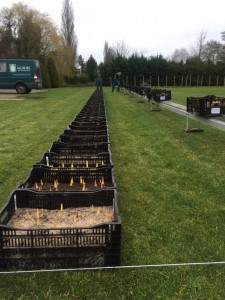 Last Friday we placed the tulips for our test garden outside. Many of our tulip bulbs are used for park planting and we try to mimic the growing conditions at our customers for as much as possible. Therefore we plant bulbs of lots that are going to be planted in parks in our test garden, so that we can compare the results.
