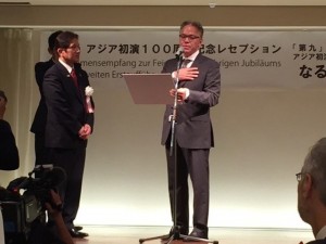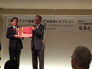 Stephan Pfluger, who is the grandson of a German prisoner of war in camp Bando, has travelled to Naruto on behalf of his family and has participated in the anniversary activities. We are glad that we were able to contribute to this anniversary by donating 1,000 tulip bulbs that will be planted on the site of the former prisoner-of-war camp this autumn. Mr Pfluger has given a voucher for these tulip bulbs to the mayor of Naruto, who was very honoured by this.