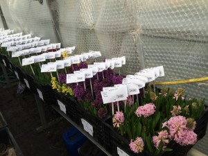 We planten niet alleen onze lelie- en tulpenbollen, maar ook onze narcissen- en hyacintenbollen. Tijdens de afgelopen maanden hebben we ongeveer 50 narcissensoorten buiten geplant en 250 hyacintenmonsters in onze testkas en we zijn blij met de resultaten. Bekijk de vierde foto voor een overzicht van onze narcissentestplantingen en de laatste foto voor een overzicht van onze hyacintentestplantingen.