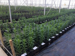 We houden van alle leliepartijen die we naar onze klanten verzenden 20 bollen apart om in onze eigen testkas te planten. Deze leliebollen worden in twee keer opgeplant: 10 bollen in februari en 10 in augustus. We doen dit al jaren met goede resultaten tot gevolg. Ook planten we veel nieuwe leliesoorten in deze testkas. Alles samen komt het uit op ongeveer 800 leliemonsters. De nieuwe ronde van leliemonsters is in februari van dit jaar geplant en die lelies zullen in mei en juni bloeien. De volgende ronde zal in augustus worden geplant en die lelies zullen in oktober en november bloeien. Bekijk de eerste foto voor een overzicht van onze lelietestkas.