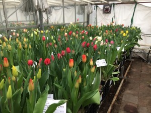 Naast onze lelietestkas hebben we ook een tulpentestkas waarin we ongeveer 4.000 monsters van al onze behandelde tulpensoorten, partijen en partijnummers planten. We hebben zowel 5°C als 9°C behandelde tulpenbollen geplant en hebben zowel grondteelt als waterbroei gebruikt. Gedurende de afgelopen winter hebben we ze geplant en we zijn blij dat de resultaten over het algemeen goed waren. Bekijk de tweede foto voor een overzicht van onze tulpentestkas.