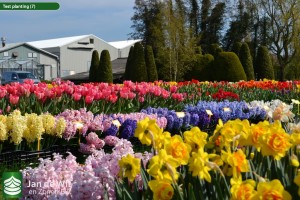 Net als de voorgaande jaren hebben we weer veel tulpen-, narcissen- en hyacintensoorten voor parkbeplanting buiten geplant op ons terrein om de kwaliteit van onze bollen te checken en onze resultaten te vergelijken met die van onze klanten. Veel soorten in onze proeftuin staan momenteel in volle bloei. U kunt hier foto's van onze proeftuin bekijken. Dit album bevat veel close-ups van de soorten met daarnaast wat overzichtsfoto's. De soortnaam staat op elke foto genoemd in de linkerbovenhoek.